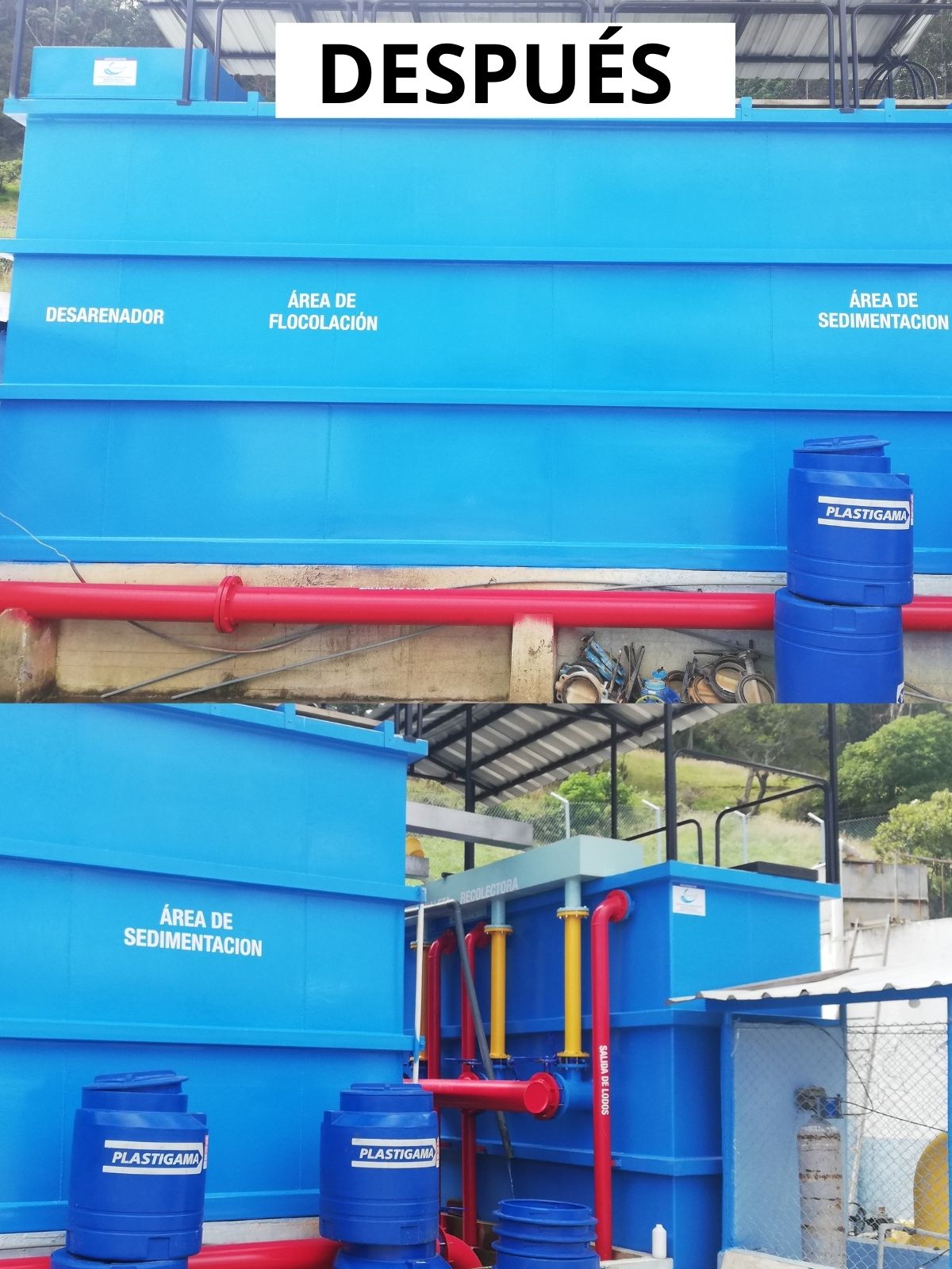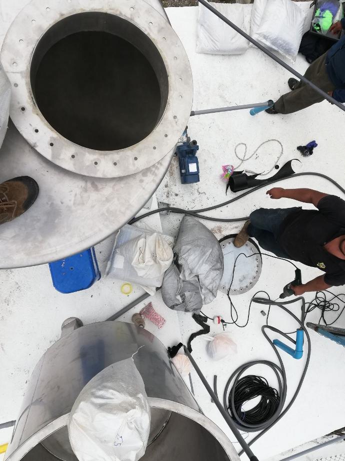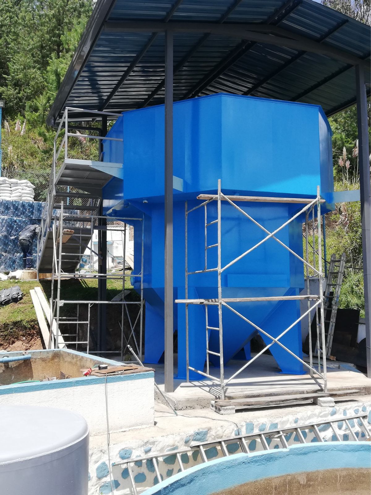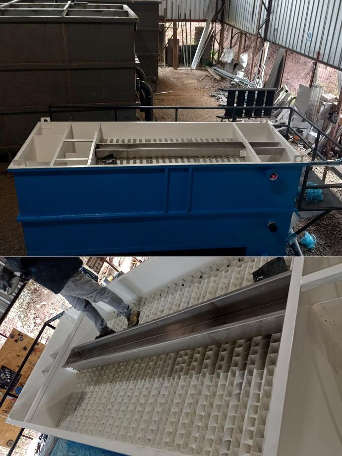 Mantenimiento de estructuras metálicas y de hormigón, cambio de lechos filtrantes cambio de módulos de sedimentación y colocación de placas de fibra de vidrio (PRFV) en la zona de floculación vertical, convencional.